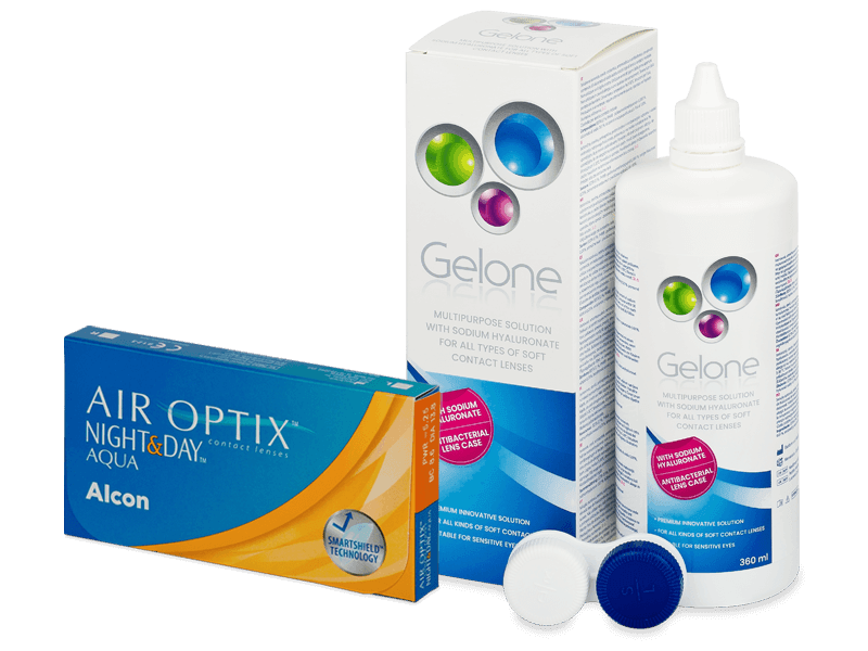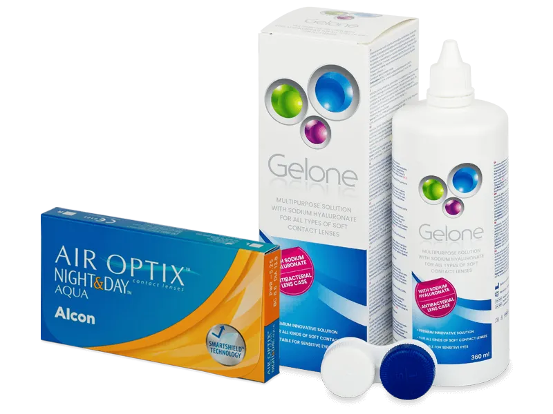 Air Optix Night and Day Aqua (6 lęšiai) + valomasis tirpalas Gelone 360 ml
